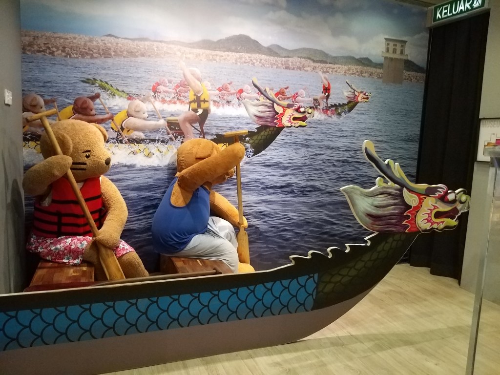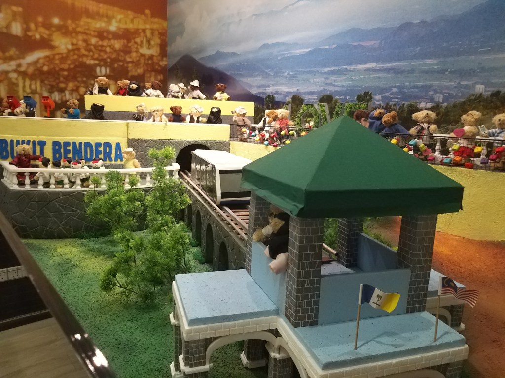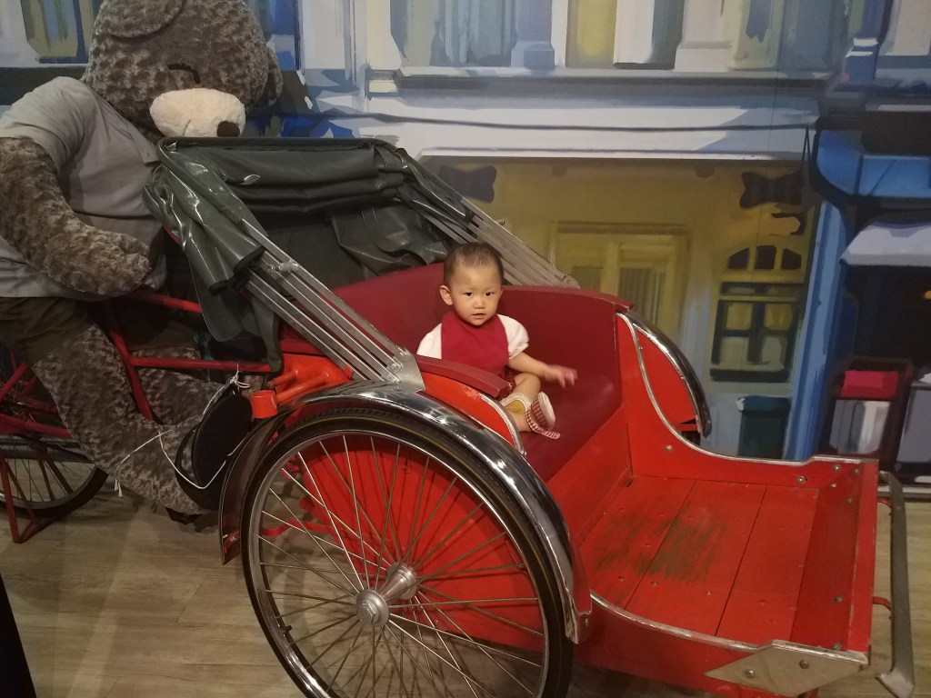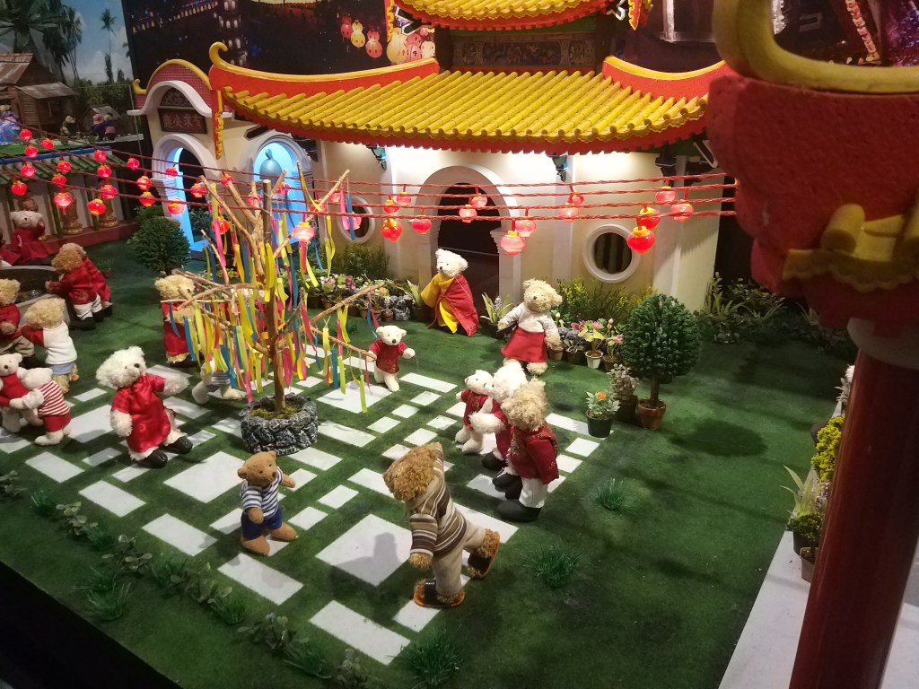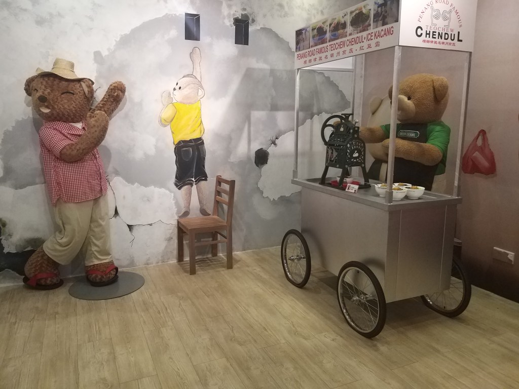 Its quiet unique because all the bear its showing our Malaysia culture especially Penang Culture, got some hawker stall, reading newspaper, and the small toy its really tidy, they showing Malays Culture in Kampung, and the Penang famous temple. All the tidy detail they really pro on it, for toddle going in this place only can take picture because small kids only like to climb or walk and luckily below 2 years old no need entrance fee.